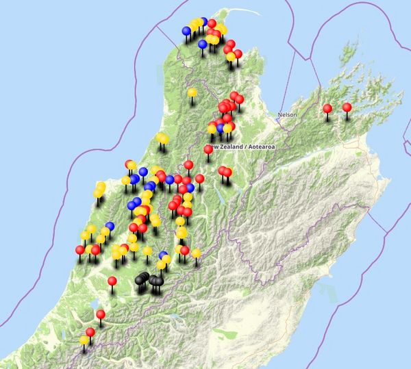 Unsere Prospektionsroute verlief von Christchurch via Lewis Pass - Reefton - Greymouth - Westport - Murchison - nach Collingwood. Ich hatte einen kleinen Camper und Dänu ein 4WD-Fahrzeug plus Zelt. Entlang der Route diente ein Campingplatz während 2-3 Tagen als Basecamp, wo die täglichen Prospektionsausflüge im Detail geplant und ausgeführt wurden.